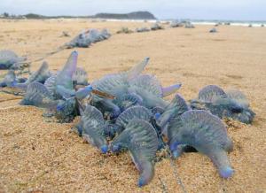 (Note: Don’t pour vinegar on these wounds, if you get stung; that’s for box jellies. With these you’re supposed to rinse with salt or regular water. I learned that today after a protracted argument with Cadillac and Ethan.)