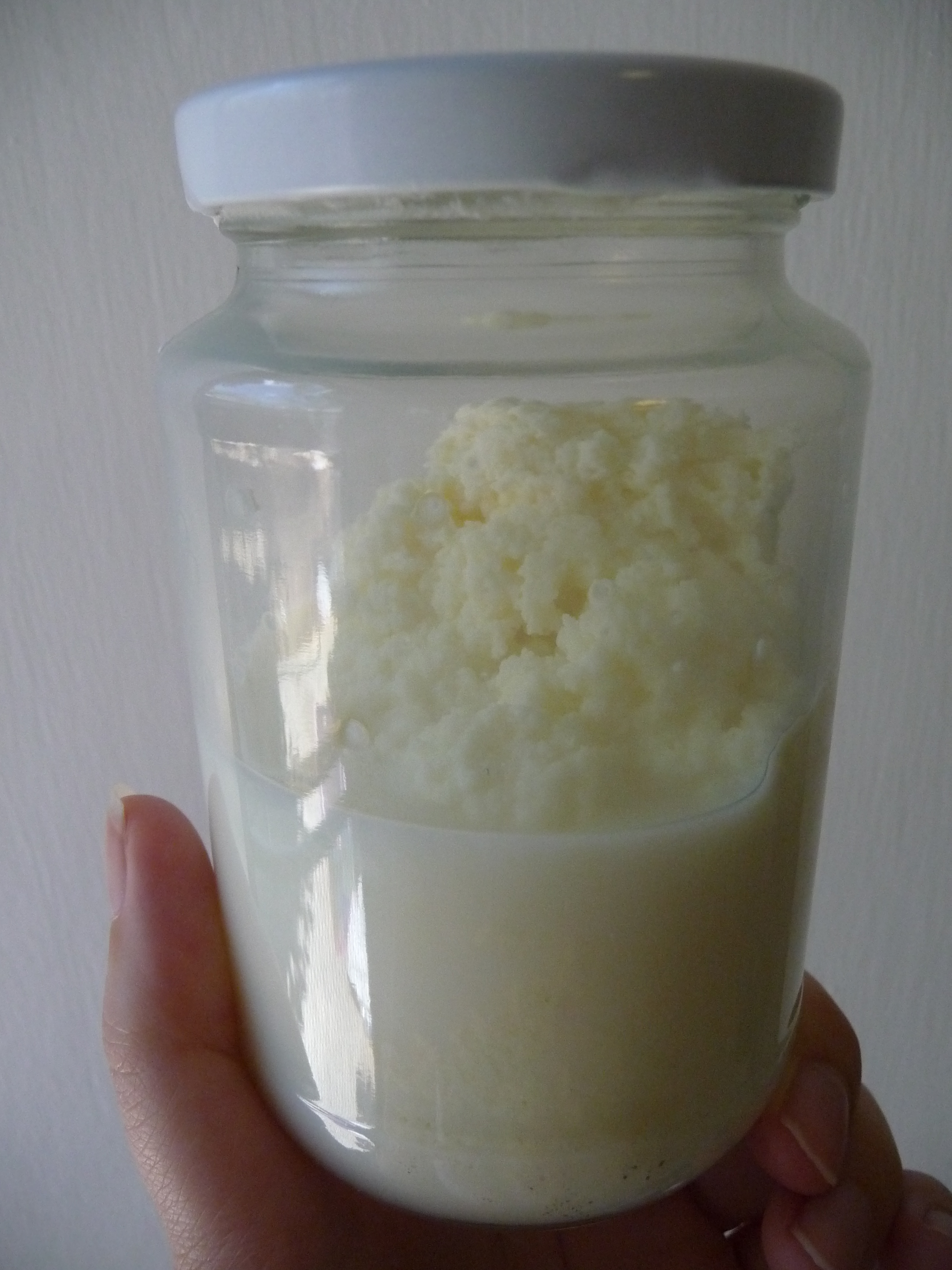 - The liquids will separate from the solids quite suddenly. This is buttermilk! Pour this off and use it for pancakes or biscuits or something.