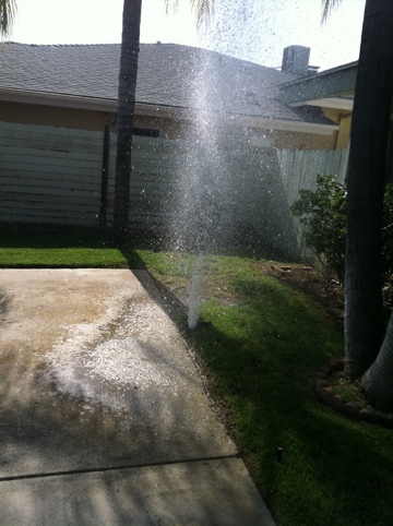 The gardeners had a bad day yesterday, I guess. I think they broke this, because I noticed that the ground was all dug up around this sprinkler nozzle. Also, in the backyard there were pieces of a Band-Aid, plus some bloody tissue, like one of them had gotten cut. Doh!