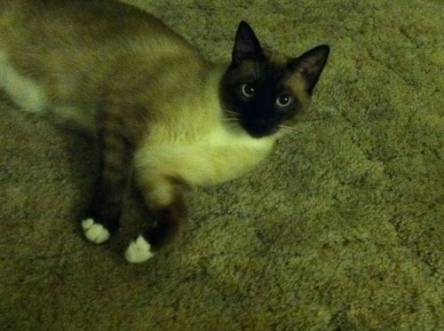 Sometimes he waits like this, all evening, while we watch TV: