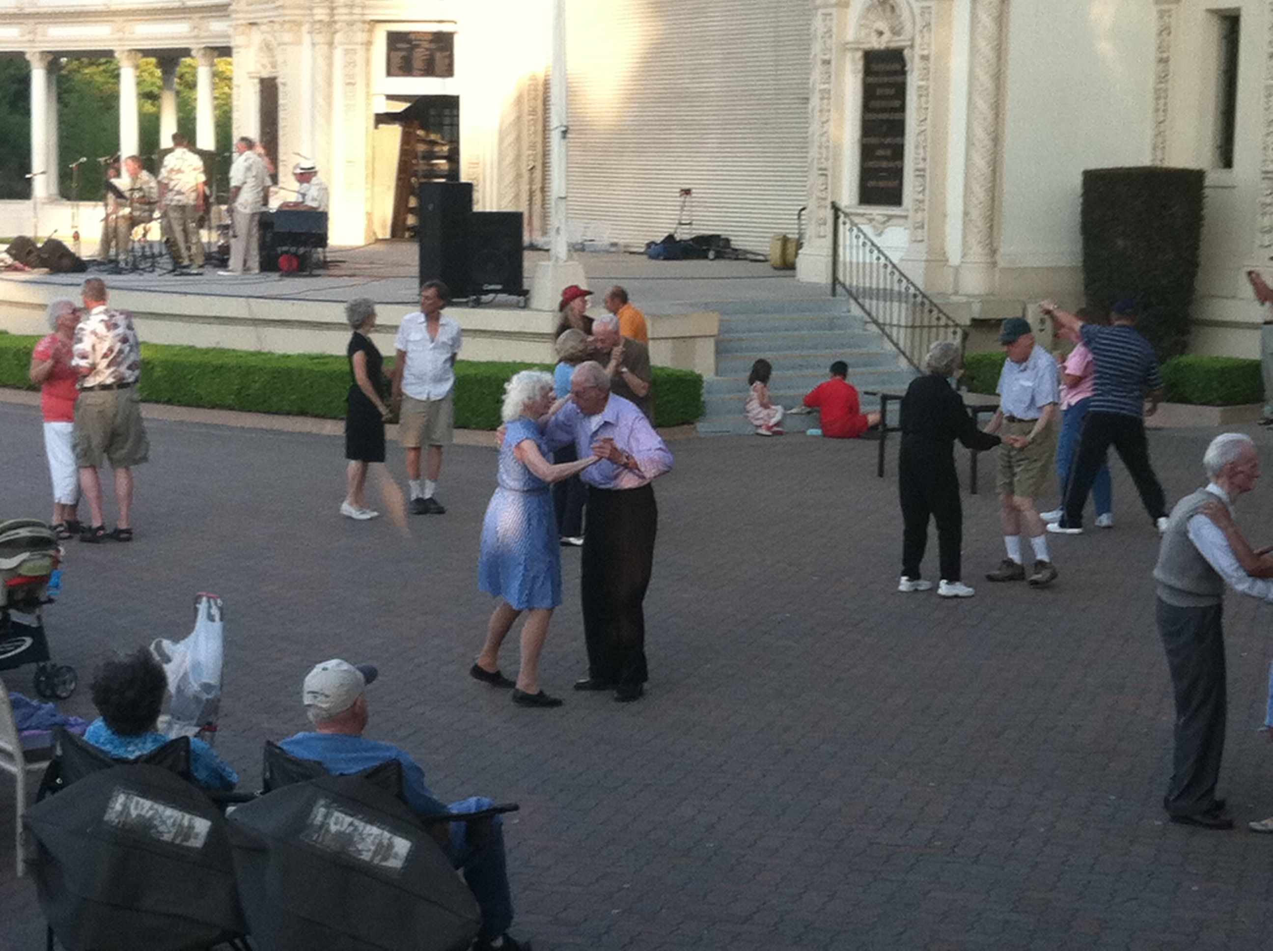 Then we headed over to The Old Globe. Along the way we saw this: music at the Organ Pavilion, picnicking families, and adorable dancing elderly folk!