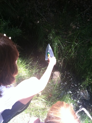 Then Eldest got more adventurous. She went upstream trying to catch bugs, but there were only water bugs about. And lots of gnats, mosquitoes, and bees. None of which we wanted to capture.