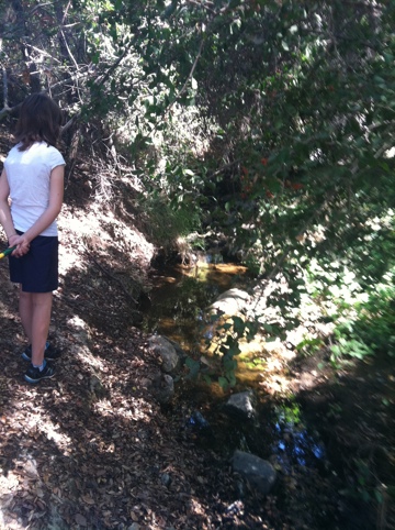 We hiked to a little offshoot of the San Diego River. My Grandma from Pennsylvania would scoff, “You call that a river? We’d call that a creek.” Except she said “crick” in her accent. Anyway, this was a mere stream, but populated by tadpoles, many dragonflies, and frogs.