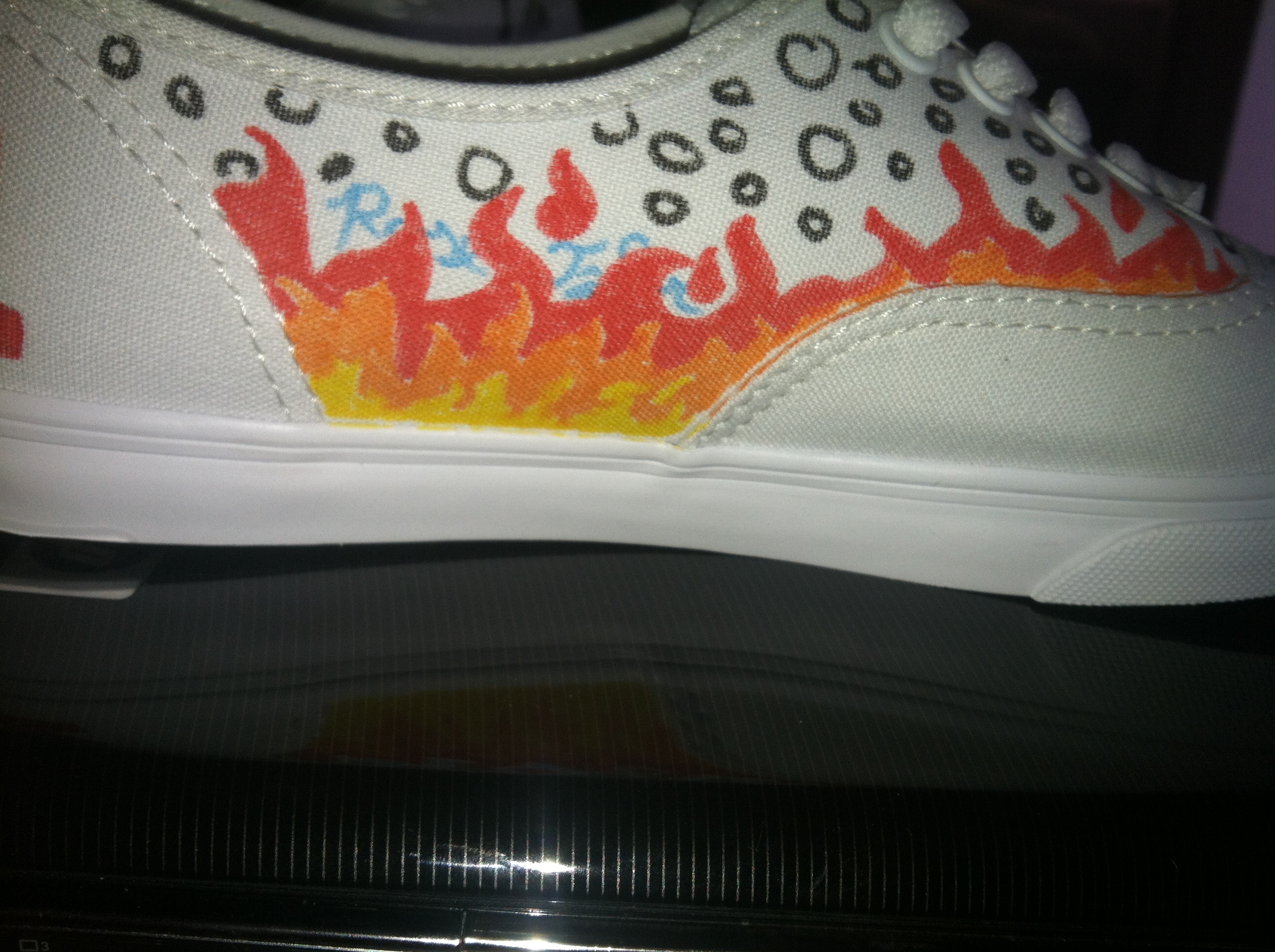 Anyway, she freehand drew these designs, and I am simply amazed at her skill and creativity. I think she should have an Etsy summer business making custom Vans drawings for people. Sherlock shoes and Dr. Who shoes. Maybe she could do more designs on request. She also made T-shirts for her and her friend, and actually cut out letter stencils in the appropriate fonts, which took her forever but made the shirts look silk-screened.