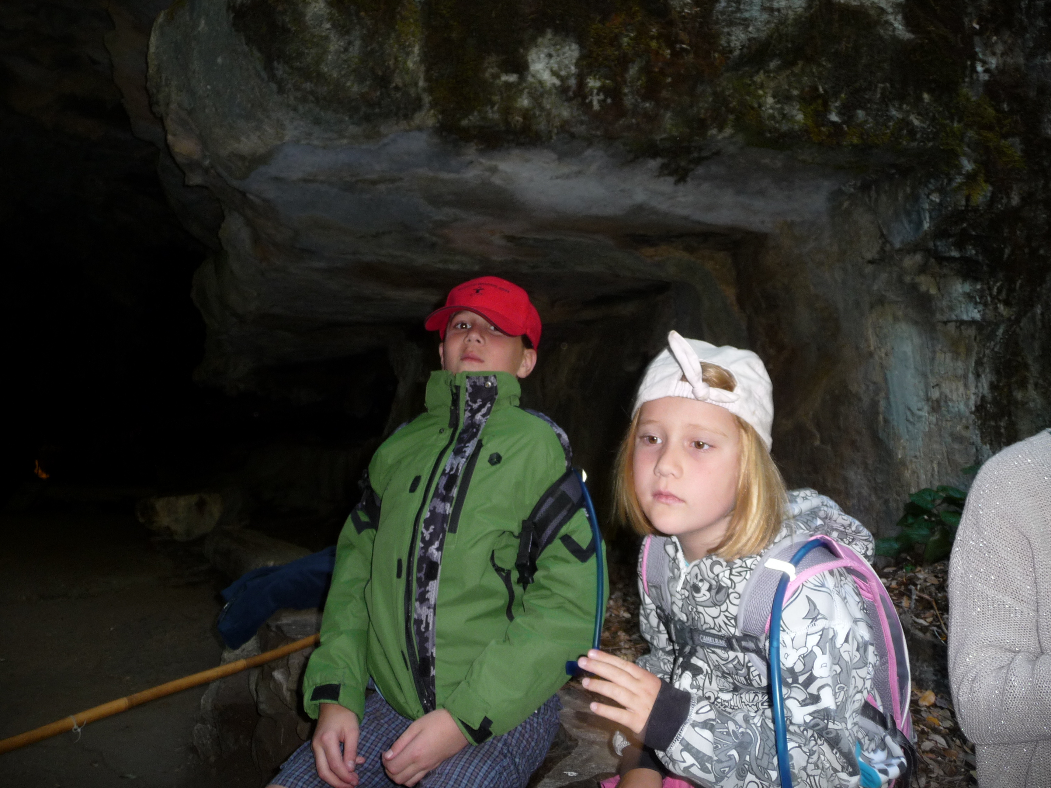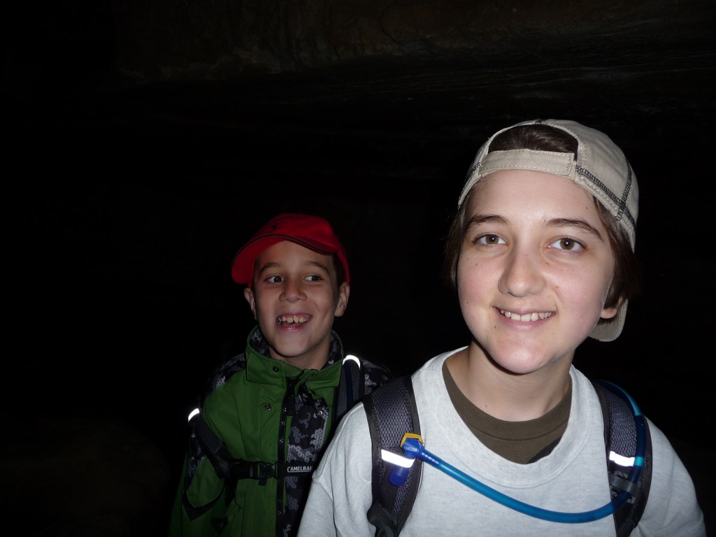 Inside the cave it was only 59 degrees, so we brought jackets. And flashlights. They had lighting, but it was still dark.