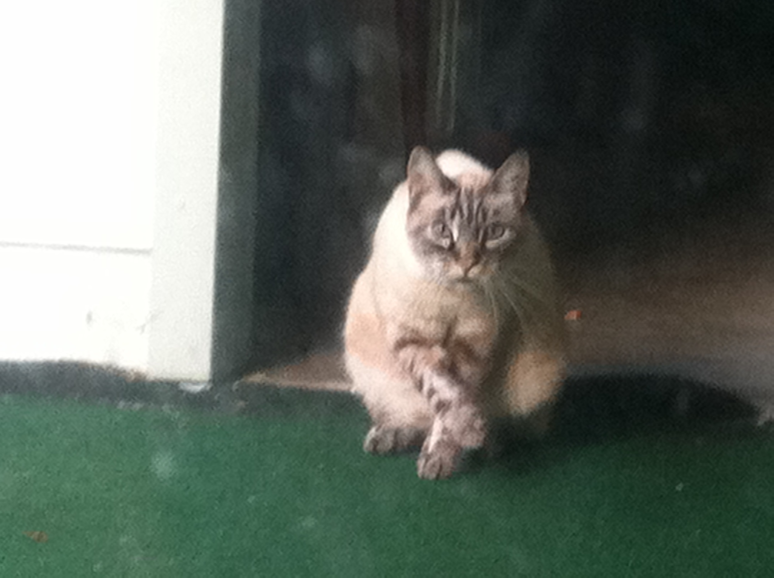 Then, one night, we saw Girl Kitty eating her food in the garage. I had Son feed her wet food every evening as I made dinner. Soon, around five, she’d hang out in the backyard, waiting. I meowed at her. She ran away.