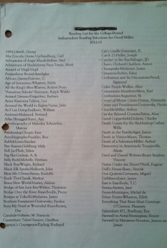 This year, at the public high school, my 9th grade daughter read THE KITE RUNNER, UNCLE TOM’S CABIN, THE PHANTOM OF THE OPERA, THE GREAT GATSBY, MOBY DICK, WUTHERING HEIGHTS, and THE HOBBIT. The English teacher gave them a 4 page list of books they could choose from (photos below), and had a “book club” (consisting of smaller groups of like-minded classmates) where the kids had to read 400 pages per quarter and meet occasionally in class to discuss it and answer questions (how they were graded).
