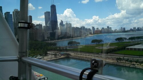 We finally walked to the Navy Pier, which involved going under a freeway and lots of me complaining. So Cadillac bought me an Italian ice and we went on the ferris wheel (image below).