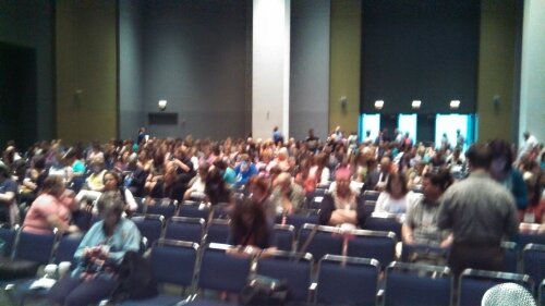 So many people had signed up to attend the session, that they had to reassign us to a bigger auditorium– like 690 when I last looked. I think around half that attended. This picture is when it was filling up. NOBODY would sit in the front row. Maybe because they didn’t want to strain the necks, but maybe also because it was marked SPLASH ZONE. Also, I apologize for not having a panel picture. I am sure somebody took one. You probably don’t even believe me. Yup, I just ran up on stage and took this photo and then ran away.