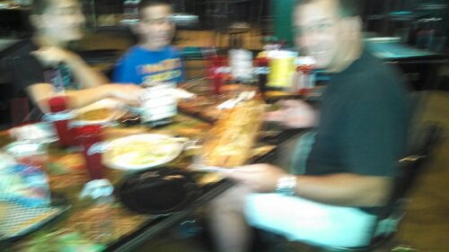 Their claim to fame is the 22 inch “Big Unit” hot dog, which of course we had to get because it was supposed to be really good. Sadly the photo was blurred. But you can make out Cadillac’s grin. It was just a lightly grilled hotdog. It wasn’t the best hot dog I ever ate; toppings were standard out of the bottle stuff. The one I had in Chicago right before we got in a taxi accident was better.