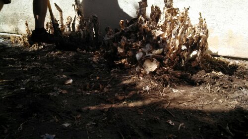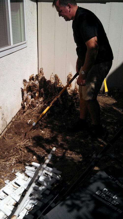 It came out pretty easily. I started digging them out while Cadillac wasn’t home, and he arrived home and said, “Let me get in there,” and dug out the rest. MY PLAN WORKED! See, all I have to do is start a project; then Cadillac’s OCD and Catholic guilt takes over and he worries that I’ll get hurt or won’t do it right or feels bad for not doing it. Which is what happens when I find him cooking– I get in there and take over– so everything’s kind of equal.