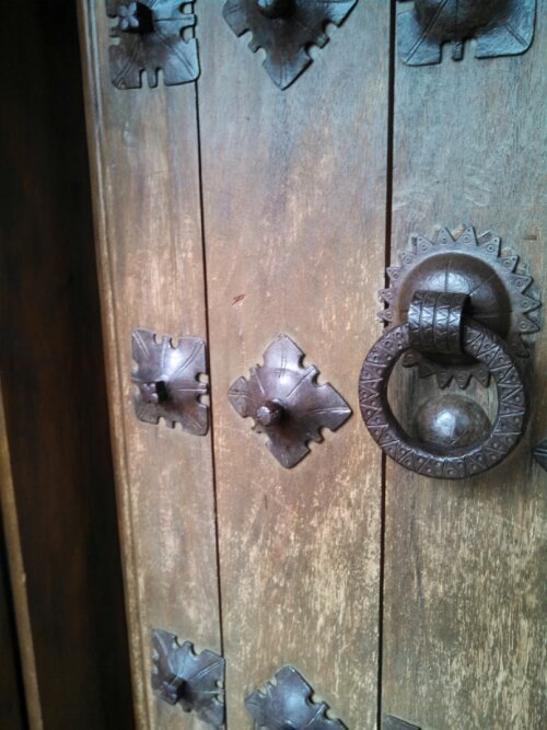 Detail from the door. I liked looking at all the scratches. One had vertical scratches down from the knocker and I imagined someone like Errol Flynn trying to get into the showgirls’ room and being denied and dragging his nails down the door.