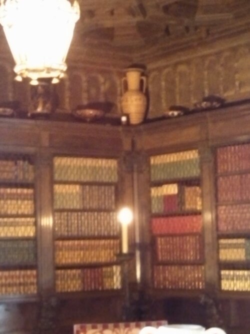 Obviously my favorite room was the library. Not only are there like (literally, I think this is the number) 4000 books, there’s a collection of actual Greek pottery along the tops of the bookcases. Not reproductions. Can you imagine staying at someone’s house and seeing such a vast collection of antiquities?