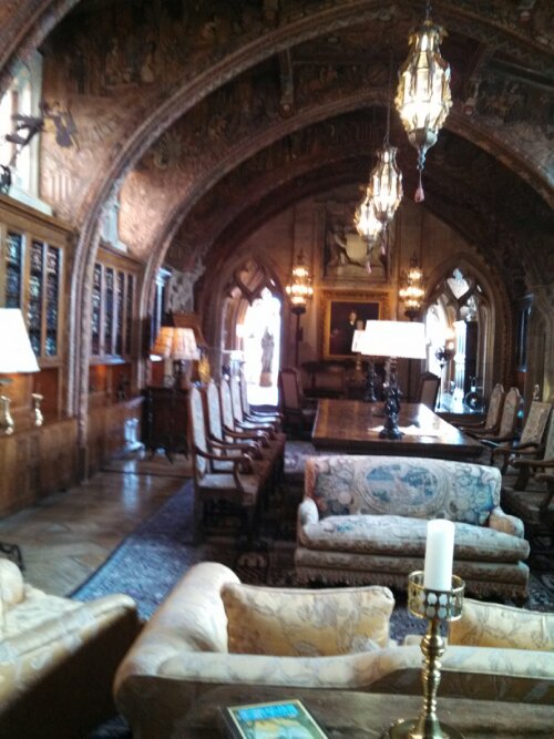 This is the “Gothic” room, where meetings were often held. Here’s a table with A CHRISTMAS CAROL (Dickens was one of Hearst’s faves) and THE CALL OF THE WILD. First editions? Why else would they be displayed? I didn’t get a chance to ask.