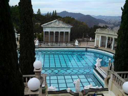 After his business was concluded, he came back and we drove up to Hearst Castle, about an hour north of there. Or more, depending on traffic and whether someone is driving like they’re on a tractor in front of you, which was often the case. Or less, if you drive like Cadillac and pass people in your rented 4 cylinder car by accelerating terrifyingly past long lines of cars (only where you’re allowed to pass, of course). And why do people go really slow, then when you try to pass, gas it?