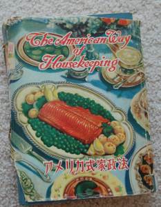 I found this among some books that came from my mother-in-laws effects. She and her husband were in Yokohama where he was managing port facilities for the army. It appears to be a very old copy, perhaps a first edition. It had a half dozen cut out recipes tucked in the pages for various triumphs of the 50s housewife. She was a Betty Crocker cook. Overcooked vegetables, dry meat, no spice please!